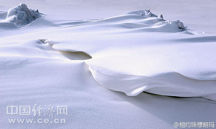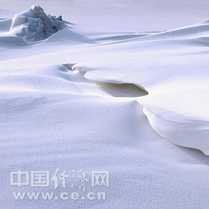 层层叠叠的皑皑白雪,蓝天白云,给我们无限遐想。