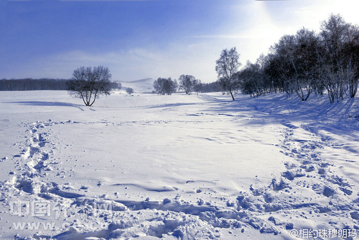 北京的雪景实在是难求难得。所以应该在冬天去真正的北方,去感受湛蓝天空下一望无际的茫茫白雪。