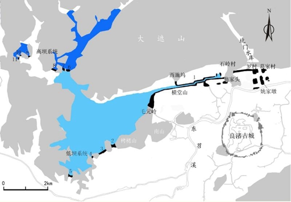 在2009年至2015年期间,有关研究机构通过考古调查发掘,结合遥感(RS)和GIS分析手段,联合水利学科,确认良渚古城外围存在一个由11条坝体构成的水利系统,控制范围达100平方公里,距今已有5000余年,具有防洪、运输和灌溉等综合功能,属中国最早的大型水利系统之一,也是世界最早的拦洪大坝系统之一。