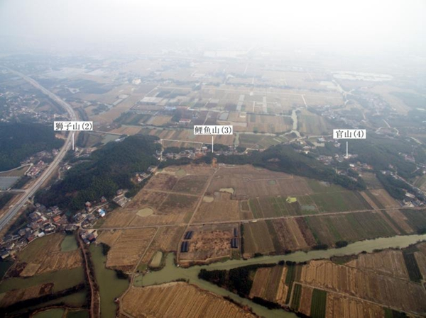 良诸狮子山、鲤鱼山、官山坝体现状(北向南拍摄)。