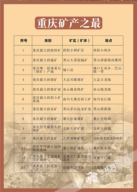 重庆矿产之最一览表。重庆市地理信息中心供图 华龙网发