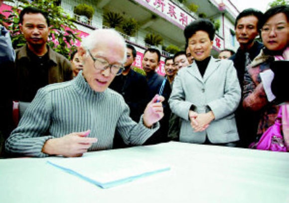 2005年10月回来时,余老在悦来场即兴赋诗。