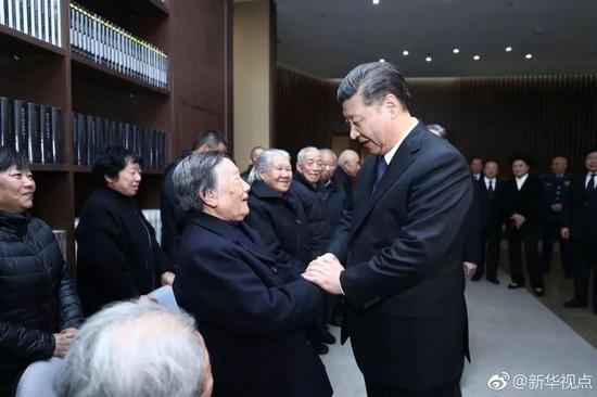 第四次参加国家公祭仪式的南京大屠杀幸存者夏淑琴已经是第二次接受习总书记的会见。3年前,在首个国家公祭仪式上,习近平总书记曾搀扶着她一同走上公祭台,为国家公祭鼎揭幕。