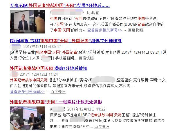 这两天,一则宣称 “外国记者挑战中国天网系统,仅7分钟就被击败”的信息在中国的网络上被许多网友乃至主流媒体扩散着。