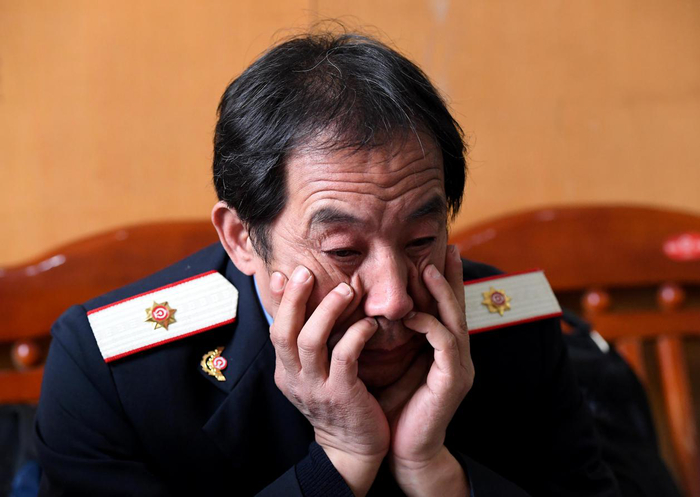 1月24日,回想起父亲生病去世的情形,磨滩分区亭值守员赵海波潸然泪下