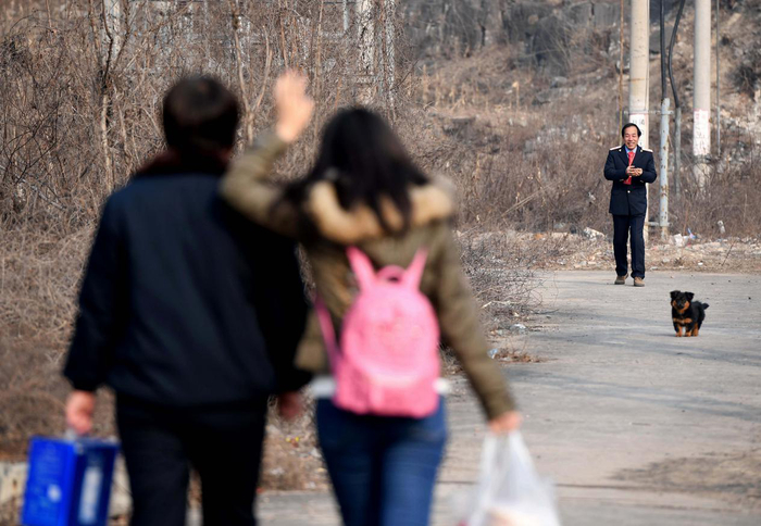 母女相见,女儿雀跃着扑进母亲怀里,两人有说有笑。此时此刻,父亲已在院子门口眺望妻女的方向。女儿远远地看见父亲,笑笑挥手喊道:“爸!”
