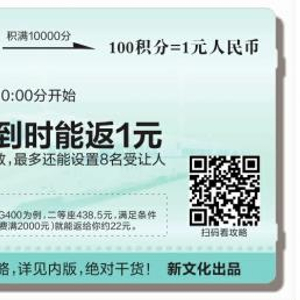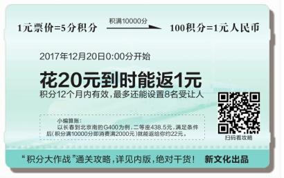小编以长春到北京南的G400为例,二等座438.5元,满足条件后(积分满1万分即消费满2000元)就能返给你约22元。