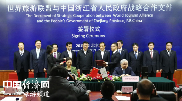 12月17日,世界旅游联盟(WTA)与中国浙江省政府战略合作文件签字仪式在北京举行。经济日报-中国经济网记者 裴小阁摄影