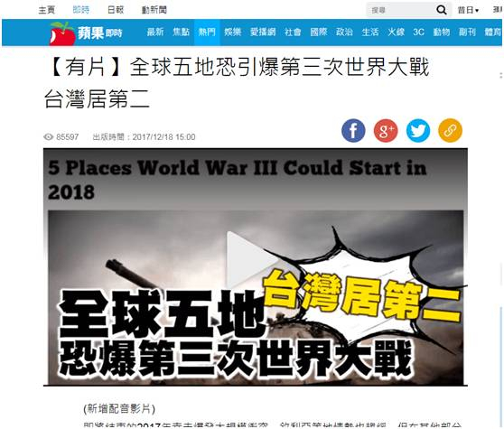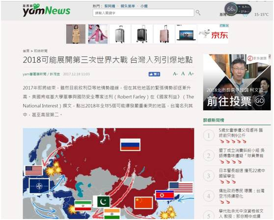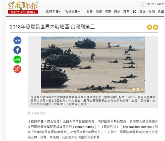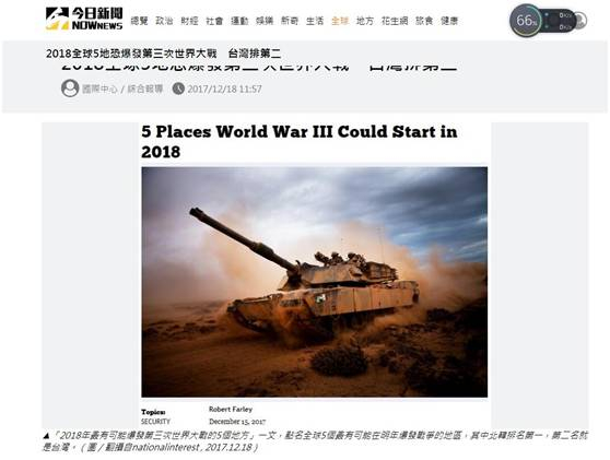 美媒预测世界大战爆发地台排前二 “台独”仍作死