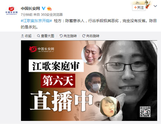 [江歌案检方称陈世峰行凶手段极其恶劣 完全没反省]