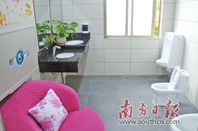 家庭如厕可到第三卫生间,残疾人如厕遇困难可使用呼叫器求助,游客累了可以在休息厅坐下来歇息,渴了可以喝水,想浏览资讯可以连接WiFi上网……走进位于开平碉楼立园景区的3A厕所,除男女厕所外,休息室、母婴室、残疾人厕所以及“第三卫生间”等一应俱全。