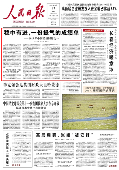 2017年,中国经济交出了一份很提气的“年报”:经济增速一枝独秀,就业目标超额完成,企业景气度多项指标创近5年新高,国际货币基金组织一年内4次上调中国经济增长预期……在世界经济舞台的聚光灯下,中国经济颜值高、气质好、活力足,释放满满正能量。