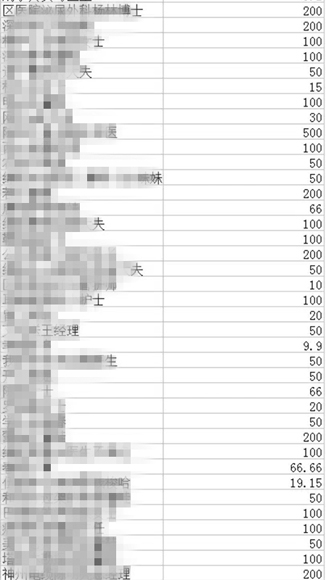 不止黎秋江,柳庆君在朋友圈还为多位需要帮助的病人发起过募捐,共计为这些病人募捐到约40万的爱心资金,以供他们的后续治疗。筹得的捐款,柳庆君都会一笔一笔记录下来,并反复核对。收到每笔善款后,他都习惯一一表示感谢,并随时跟捐款人汇报情况。