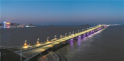 港珠澳大桥开始亮灯