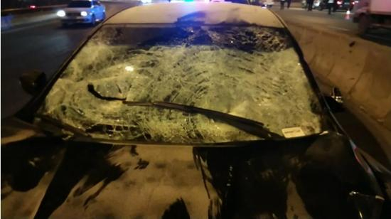 6时许,记者赶到现场看到,一辆黑色尼桑轿车停在和兴路往公路大桥方向,其车车头严重受损,车辆前风挡玻璃碎裂。
