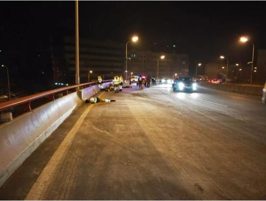 二环桥双向桥面上躺着4名环卫工人,经急救人员确认,4人已不幸身亡,“被撞的环卫工,都撞飞到对向车道了。”现场市民说。