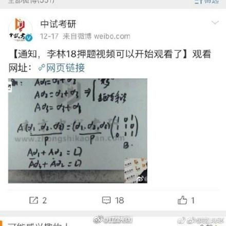 [“数学名师”押中80%考研真题?大连理工:将严肃处理涉事教师]12月25日,2018年全国硕士研究生招生考试结束后,有多名网友举报称,考研数学疑似泄题。举报内容均指向南京中试考研“命题专家”李林。红星新闻证实,李林系大连理工大学数学科学学院教师。