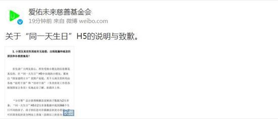 “同一天生日”主办方就网络募捐发说明并致歉