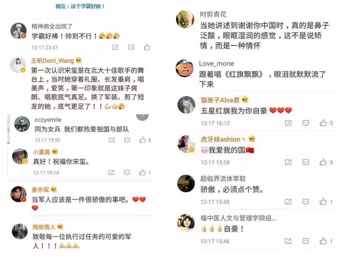 宋玺动情演唱的《红旗飘飘》感动了无数网友,短视频点击量超过了1500万次,百余家重点媒体及机构的官方微信微博跟进报道了宋玺的故事,包括人民日报、新华社、央视新闻、瞭望、紫光阁、解放军报、头条新闻、今日头条、长安街知事等头部“大V”,同时还产生了3篇“10万+”阅读量的微信文章。宋玺也因为对祖国的热爱、对战友的深情,引得网友们疯狂打call,被称为“国系90后”。