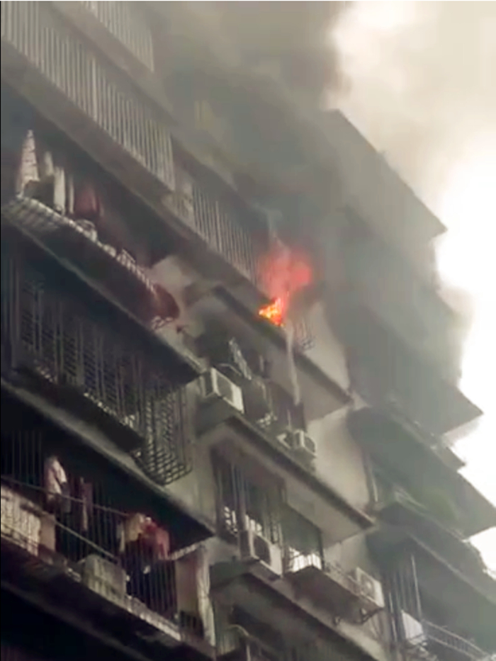 居民楼高层失火 火舌夺窗而出黑烟冲天