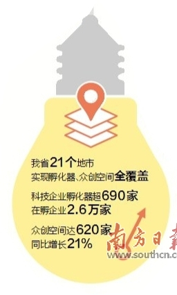 27日,调研组从省科技厅了解到一组最新数据:我省21个地市实现孵化器、众创空间全覆盖,其中科技企业孵化器超690家,在孵企业2.6万家;众创空间达620家,同比增长21%,可谓颇具阵容。然而,其运作的效率和质量还有待提高。
