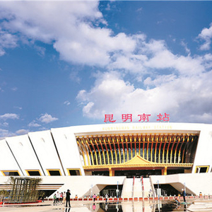屹立在蓝天白云下的昆明南站。