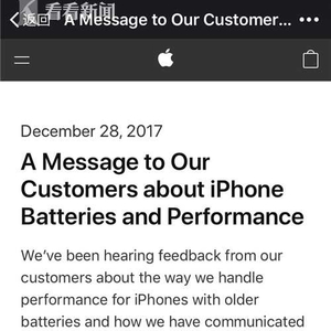 最近,对我们在使用较早期电池 iPhone 性能表现上的处理方式,以及对这一处理方式的沟通说明,我们一直都在听取用户的意见和反馈。有些用户因此对 Apple 感到失望,在这里,我们致以诚挚的歉意。关于这个问题存在着许多的误解,所以我们想向大家澄清其中原委,并向大家说明我们正在做出的一些改变。
