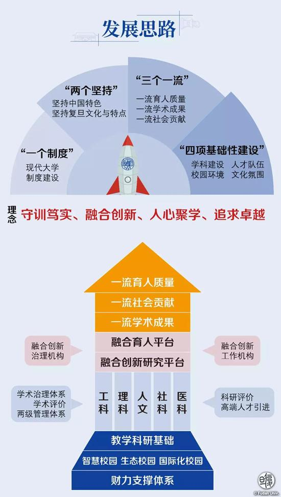 2017年12月28日,《复旦大学一流大学建设总体方案》(以下简称《方案》)正式发布。作为一所享有盛誉的综合性研究型大学,我们认识到:要实现中华民族伟大复兴的强国梦,高等教育必须率先向世界一流水平靠拢。复旦大学要在中国实现强国梦的道路上率先迈入“世界一流”,乃至跻身“世界顶尖”。