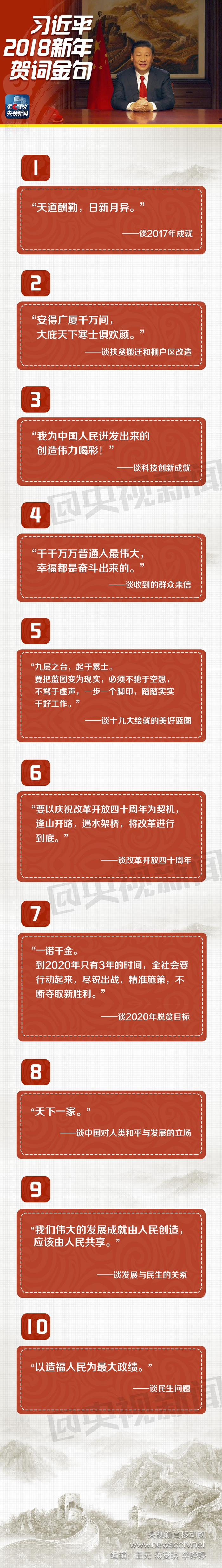 原标题:习近平2018新年贺词中必学的10大“金句”