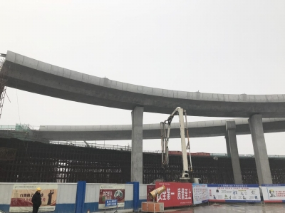 昨天上午,运河南路主线桥也开始了钢箱梁的架设。记者在运河南路主线桥施工现场看到,和其他路段较为清晰单一的施工现场不同,由于要和开发路主线桥以及G40高速、G328国道实现互通,这里的建设现场场面非常大。“这里应该是城市南部快速通道建设的制高点,为了能和开发路主线桥互通,这一块就有8个匝道,实现四个方向的互联互通,再往前,是和G40高速的两个匝道,再往前,和G328国道也有两个匝道实现互通。有的匝道层层交叠,最高的地方达到了28米。”城市南部快速通道六标项目经理王国富介绍。