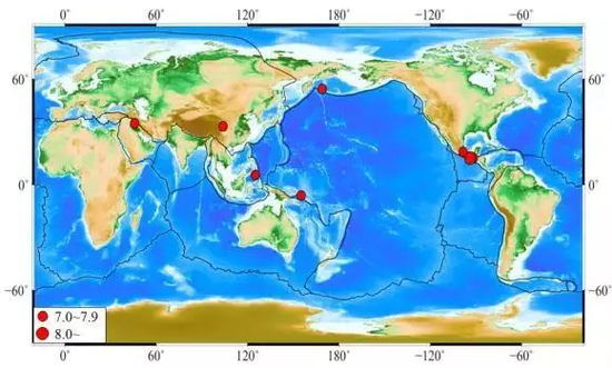 全球7级及以上地震分布情况