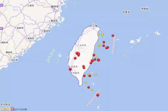 2017年台湾三级以上地震活动分布图