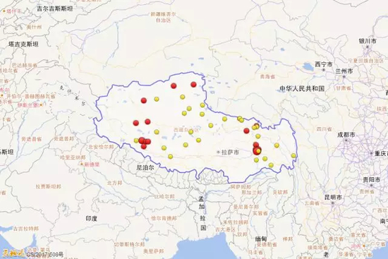 2017年西藏三级以上地震活动分布图