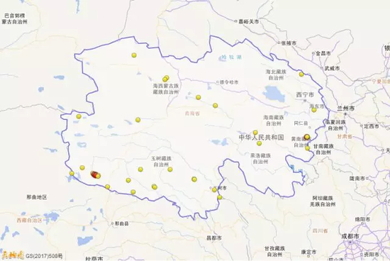 2017年青海三级以上地震活动分布图