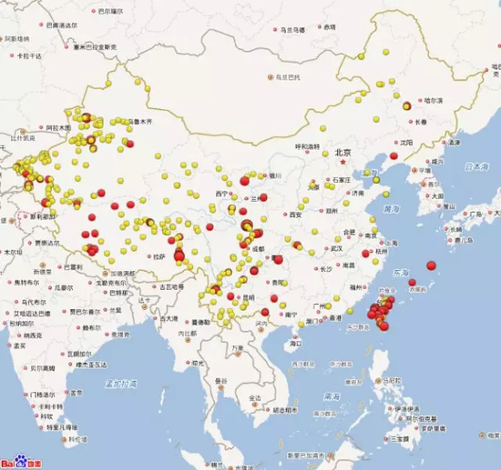国内5级及以上地震分布情况