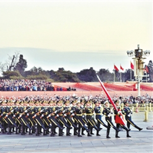 自新中国成立以来,天安门广场升降国旗仪式经过多次调整。1982年12月28日,原武警北京总队第六支队十一中队五班进驻天安门,担负天安门广场升降和守卫国旗任务。我国有了第一套规范的国旗升降仪式。35年来,武警国旗护卫队用挺拔的军姿、威武的气势,维护着祖国的尊严,向世界展示着国家和军队的形象。
