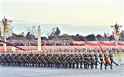 | 1月1日晨,北京天安门广场举行隆重的升国旗仪式,这是由人民解放军担负国旗护卫任务后,首次举行的升旗仪式。新华社发 |