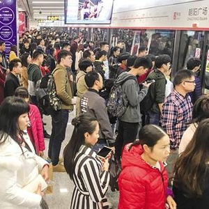 地铁车站根据客流的情况进行合理引导,如有需要时车站进行客流控制,防止乘客拥挤导致安全事件。节假日高峰期时段,朝阳广场站和广西大学站在出入口进行了三级客流控制,组织分批放行,确保乘客有序进站。