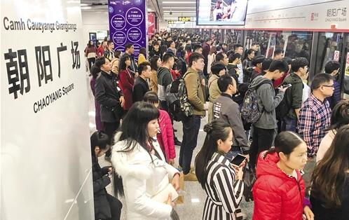 朝阳广场站作为1、2号线换乘站,客流增长最明显,2017年12月31日进出站客运量为234655人次,与之前10月1日的历史最高进出站客运量126158相比,增长率约为83%。