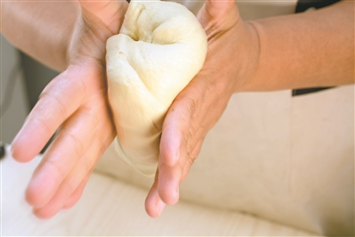 面团排气。