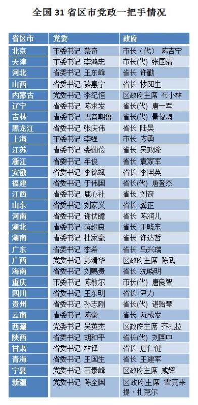 摘要:经过一番密集的人事调动,至1月4日刘国中被任命为陕西省代省长后,全国31个省区市的62名党政一把手已全部到位。
