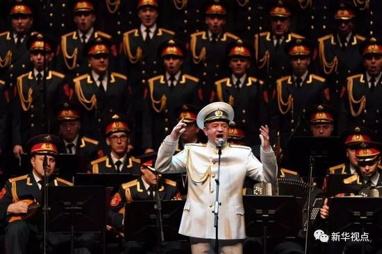 这里上演的,是俄罗斯亚历山德罗夫红旗歌舞团的“铁血再燃”音乐会。
