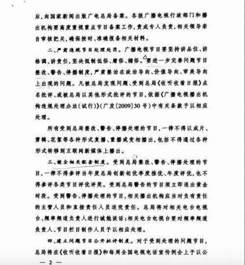 所有受到总局整改、警告、停播处理的节目,一律不得以成片、剪辑、花絮等各种形式复播、重播或变相播出,包括不得通过各种形式转移到互联网新媒体上播出。