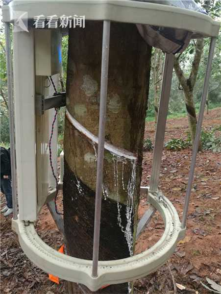 据介绍,这项全自动割胶系统不仅仅是割胶,它还将割胶所获得的数据如橡胶产量、天气影响、病虫害情况等及时通过手机传输到终端系统,结合橡胶价格、影响产量的其他因素等数据综合分析,为天然橡胶生产实现智能化管理提供条件。