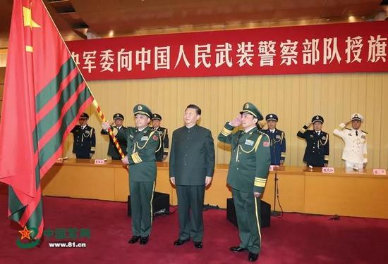 这次授旗是十天内的第三大动作。国防部新闻发言人吴谦介绍,中央军委决定授予武警部队“中国人民武装警察部队旗”,是为了更好地激励武警部队官兵履行新时代使命任务,永远做党和人民的忠诚卫士。