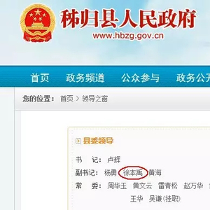 近日,秭归县人民政府官方网站“领导之窗”栏目更新,“县委领导”一栏显示,全国青联委员、中国青年志愿者协会副会长、2004感动中国年度人物徐本禹已任秭归县委副书记。