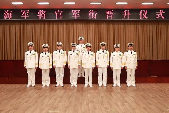 1月9日下午,海军在京举行将官军衔晋升仪式。海军司令员沈金龙宣读中央军委主席习近平签署的晋升军衔命令,海军政委秦生祥主持晋衔仪式。刘毅、冯丹宇、陈学斌、刘训言、张文旦、周煦明出席。