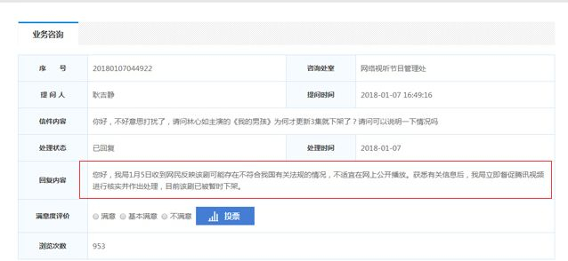 而接到他们举报的相关部门也很快做出了回应:已经要求腾讯视频将《我的男孩》内容全部下架,将进行进一步背景审核。
