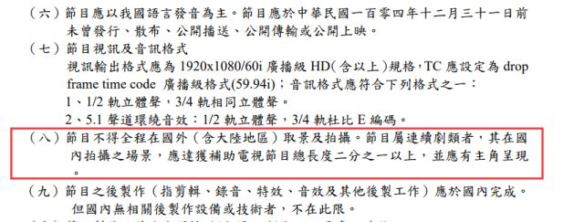 其中“吴怡霞”给出的理由是,这部剧曾经获得过台湾“文化部”2000万新台币的补助,而获取补助的条件则包括“必须以我国语言发音为准”,“不得全程在包含国外(含大陆地区)取景拍摄”,“参加国外评奖应以中华民国或台湾名义参加”以及“无条件配合台湾‘文化部门’宣传”等。