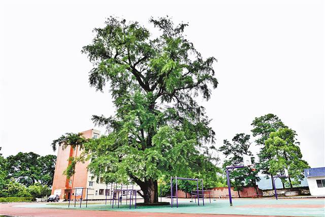 这棵古树就像一把天然的遮阳伞,在夏天,200个学生站在树下晒不到太阳,它也因此,几乎见证了学校每个学生的成长,学生们对古树也很是喜欢。